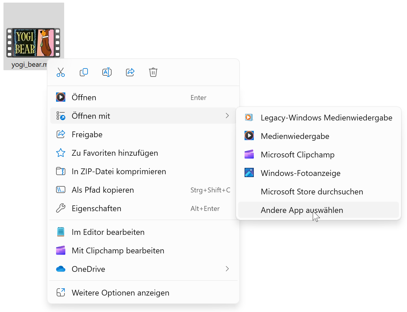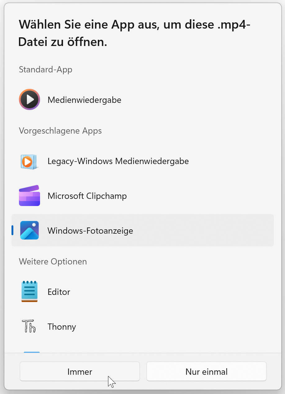 Wird das Video nicht automatisch mit der App "Fotos" ("Windows-Fotoanzeige") geöffnet, gehen Sie wie folgt vor: