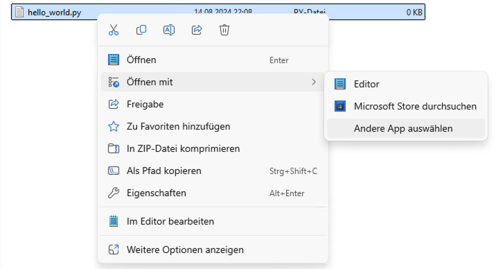 Um eine Datei mit dem Windows Editor zu öffnen, machen Sie einen Rechtsklick auf die Datei und klicken Sie Öffnen mit → Editor