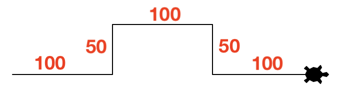 Schreiben Sie ein Turtle-Programm, das folgende Figur mit den angegebenen Längen zeichnet (die Längenangaben müssen Sie natürlich nicht mitzeichnen 😉):