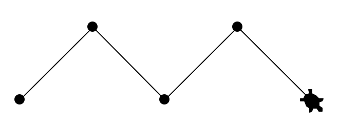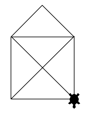 Zeichen Sie mit der Turtle das "Haus vom Nikolaus". Sie sollen also genau 8 Linien zeichnen, und somit genau 8x den Befehl forward(n) (und nie back(n)) verwenden. Verwenden Sie für das "Basis-Quadrat" eine Seitenlänge von 100.